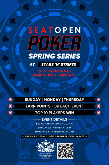 Stars Spring Series – $80 Buy-in Weekly No Limit Hold’em. Sundays, Mondays & Thursdays. In addition to regular cash payouts, points will be awarded for each event. The Top 10 point earners over the Series will win Entries into to our upcoming Events in May! Start with 25,000 Chips. Cash Game Runs 7 Days a Week Starting at 6pm. Please call us at 406.208.4648 if you have any questions.