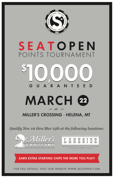 Collect Points when you play at Seat Open in Helena! Qualify to play in this fun event and a chance to take down the $3,500 First Place Prize!
